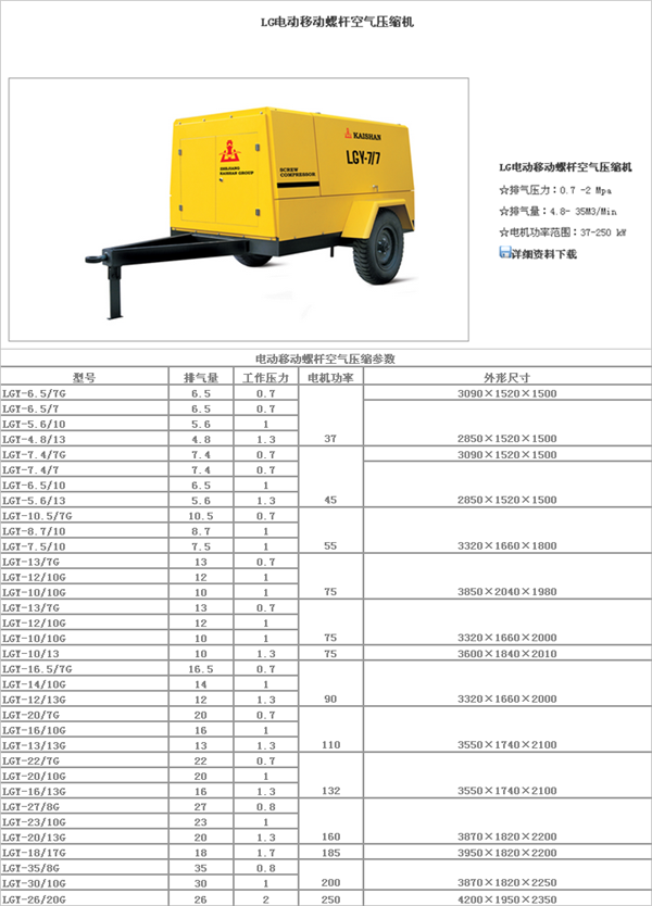 開山牌電動(dòng)柴動(dòng)螺桿式空壓機(jī)